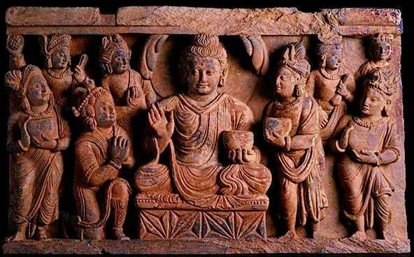 A 2nd century stone relief in the Himalayan mountains shows Buddha and his buddies playing ancient Tibetan singing bowls.